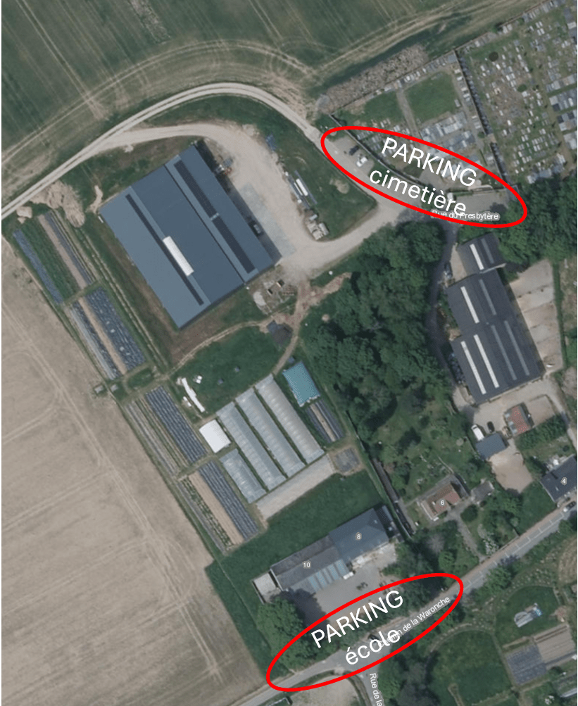 - via le chemin de la Waronche qui donne sur l’école du Petit chemin. On peut alors se garer devant l’école et accéder au champ via les deux sentiers qui longent les côtés de l’école.